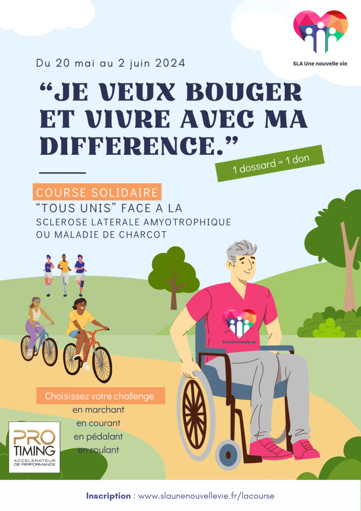 Lâassociation SLA Une nouvelle vie đ©” a proposĂ© du 20 mai au 2 juin 2024 de rĂ©aliser une course solidaire pour promouvoir la recherche de financement đ la maladie de Charcot dite SLA.